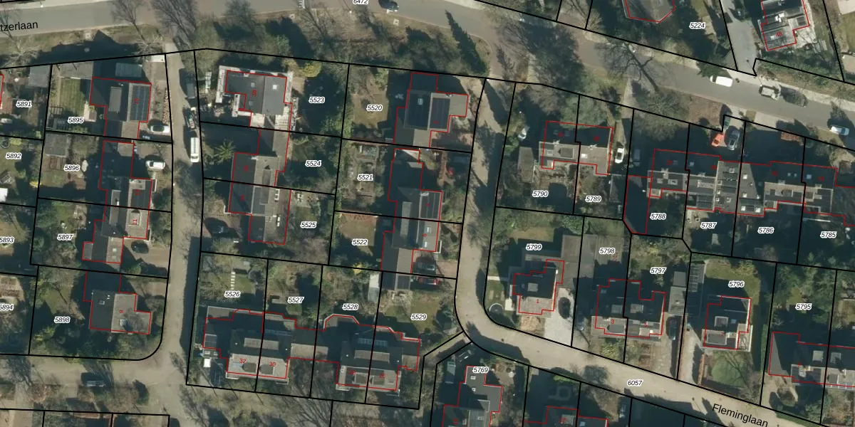 Het perceel waarop Fleminglaan 4 staat heeft een oppervlakte van 515 m². Dit is een groot perceel. De perceeloppervlakte wordt geregistreerd door het Kadaster. Gedetailleerde informatie over de maten van dit perceel kunt u vinden in het rapport Kadastrale kaart met maatvoering van Fleminglaan 4.