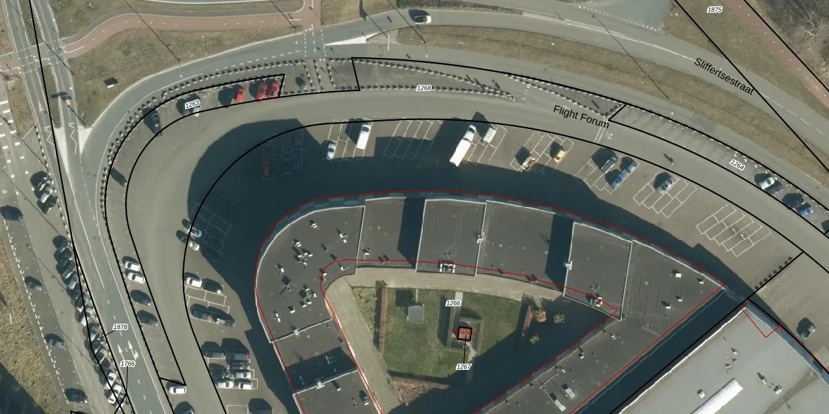 Flight Forum 3529 is gelegen op kadastraal perceel STR03F1266. Deze kadastrale aanduiding is uniek en wordt gebruikt door het Kadaster om eigendomsrechten en andere zakelijke rechten vast te leggen. Het perceel maakt onderdeel uit van de kadastrale gemeente Strijp.