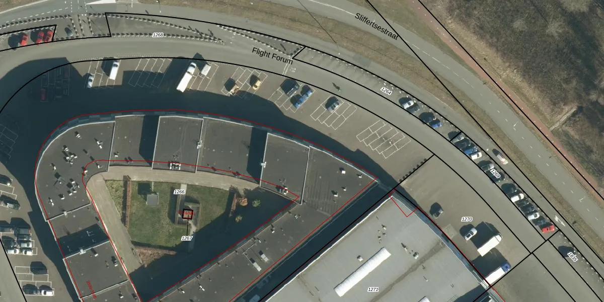 Flight Forum 3539 is gelegen op kadastraal perceel STR03F1266. Deze kadastrale aanduiding is uniek en wordt gebruikt door het Kadaster om eigendomsrechten en andere zakelijke rechten vast te leggen. Het perceel maakt onderdeel uit van de kadastrale gemeente Strijp.