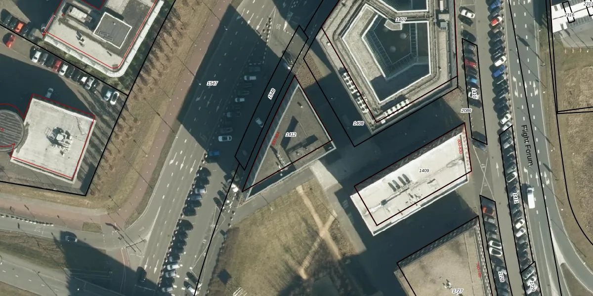 Flight Forum 883 is gelegen op kadastraal perceel STR03F1412. Deze kadastrale aanduiding is uniek en wordt gebruikt door het Kadaster om eigendomsrechten en andere zakelijke rechten vast te leggen. Het perceel maakt onderdeel uit van de kadastrale gemeente Strijp.