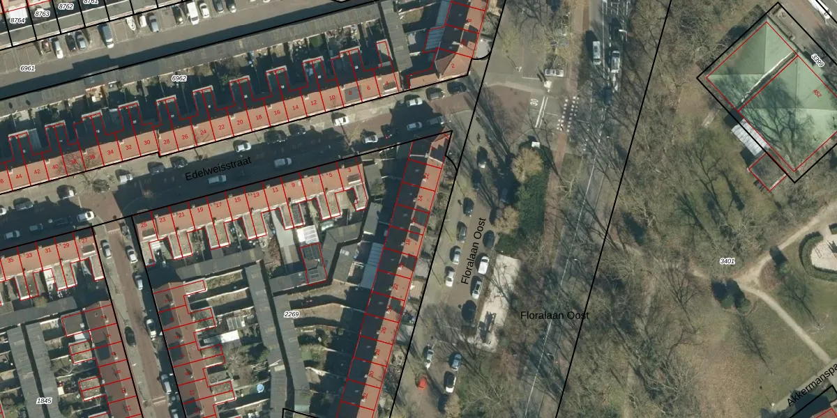 Het perceel waarop Floralaan Oost 14 staat heeft een oppervlakte van 4061 m². Dit is een zeer groot perceel. De perceeloppervlakte wordt geregistreerd door het Kadaster. Gedetailleerde informatie over de maten van dit perceel kunt u vinden in het rapport Kadastrale kaart met maatvoering van Floralaan Oost 14.
