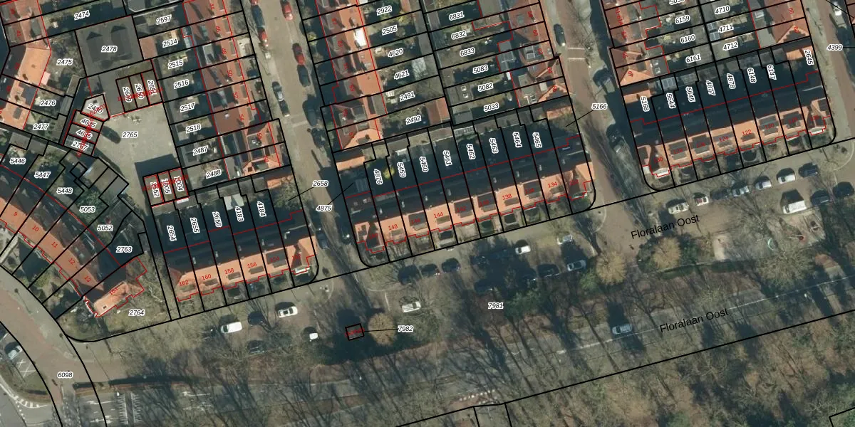 Floralaan Oost 144 is gelegen op kadastraal perceel STM00D5460. Deze kadastrale aanduiding is uniek en wordt gebruikt door het Kadaster om eigendomsrechten en andere zakelijke rechten vast te leggen. Het perceel maakt onderdeel uit van de kadastrale gemeente Stratum.