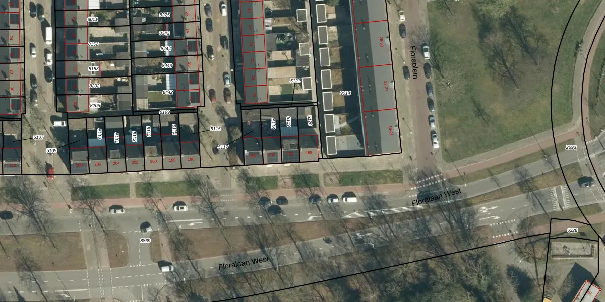 Floralaan West 188 is gelegen op kadastraal perceel STM00D5120. Deze kadastrale aanduiding is uniek en wordt gebruikt door het Kadaster om eigendomsrechten en andere zakelijke rechten vast te leggen. Het perceel maakt onderdeel uit van de kadastrale gemeente Stratum.