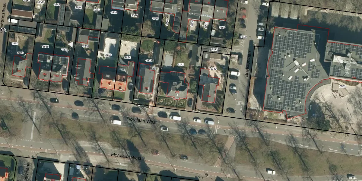 Het perceel waarop Floralaan West 270 staat heeft een oppervlakte van 807 m². Dit is een groot perceel. De perceeloppervlakte wordt geregistreerd door het Kadaster. Gedetailleerde informatie over de maten van dit perceel kunt u vinden in het rapport Kadastrale kaart met maatvoering van Floralaan West 270.