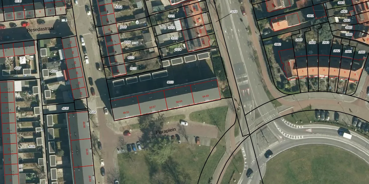 Floraplein 63 is gelegen op kadastraal perceel STM00D9013. Deze kadastrale aanduiding is uniek en wordt gebruikt door het Kadaster om eigendomsrechten en andere zakelijke rechten vast te leggen. Het perceel maakt onderdeel uit van de kadastrale gemeente Stratum.