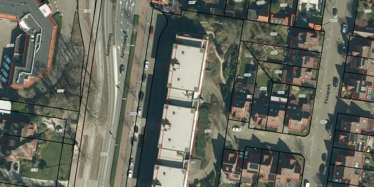 Het perceel waarop Florastate 12 staat heeft een oppervlakte van 5001 m². Dit is een zeer groot perceel. De perceeloppervlakte wordt geregistreerd door het Kadaster. Gedetailleerde informatie over de maten van dit perceel kunt u vinden in het rapport Kadastrale kaart met maatvoering van Florastate 12.