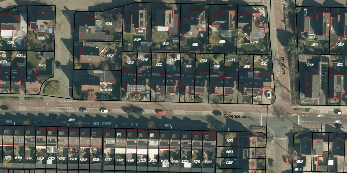 Florencelaan 25 is gelegen op kadastraal perceel WSL01C4002. Deze kadastrale aanduiding is uniek en wordt gebruikt door het Kadaster om eigendomsrechten en andere zakelijke rechten vast te leggen. Het perceel maakt onderdeel uit van de kadastrale gemeente Woensel.