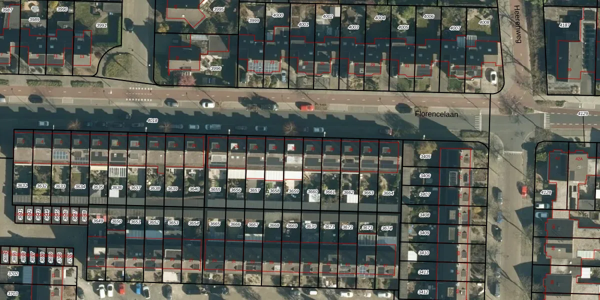 Florencelaan 30 is gelegen op kadastraal perceel WSL01C3659. Deze kadastrale aanduiding is uniek en wordt gebruikt door het Kadaster om eigendomsrechten en andere zakelijke rechten vast te leggen. Het perceel maakt onderdeel uit van de kadastrale gemeente Woensel.