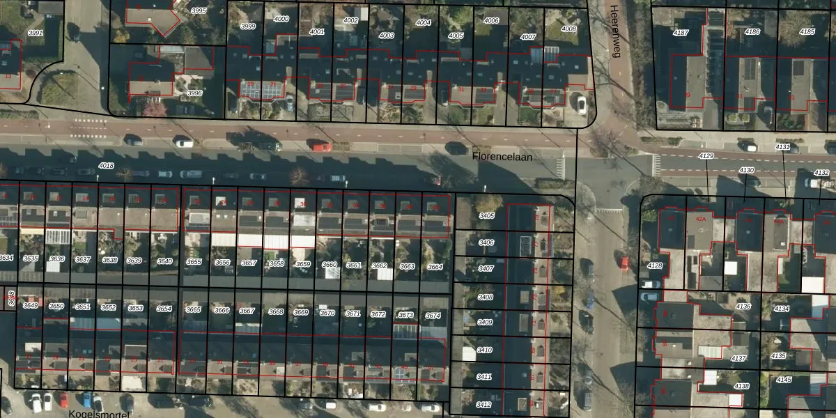 Florencelaan 38 is gelegen op kadastraal perceel WSL01C3663. Deze kadastrale aanduiding is uniek en wordt gebruikt door het Kadaster om eigendomsrechten en andere zakelijke rechten vast te leggen. Het perceel maakt onderdeel uit van de kadastrale gemeente Woensel.