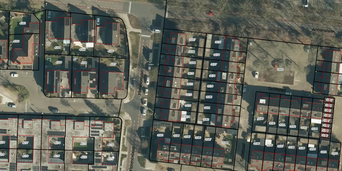 Florencelaan 56 is gelegen op kadastraal perceel WSL01C3171. Deze kadastrale aanduiding is uniek en wordt gebruikt door het Kadaster om eigendomsrechten en andere zakelijke rechten vast te leggen. Het perceel maakt onderdeel uit van de kadastrale gemeente Woensel.