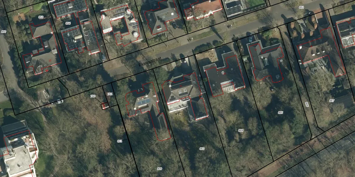 Floresstraat 15 is gelegen op kadastraal perceel TGR00D863. Deze kadastrale aanduiding is uniek en wordt gebruikt door het Kadaster om eigendomsrechten en andere zakelijke rechten vast te leggen. Het perceel maakt onderdeel uit van de kadastrale gemeente Tongelre.