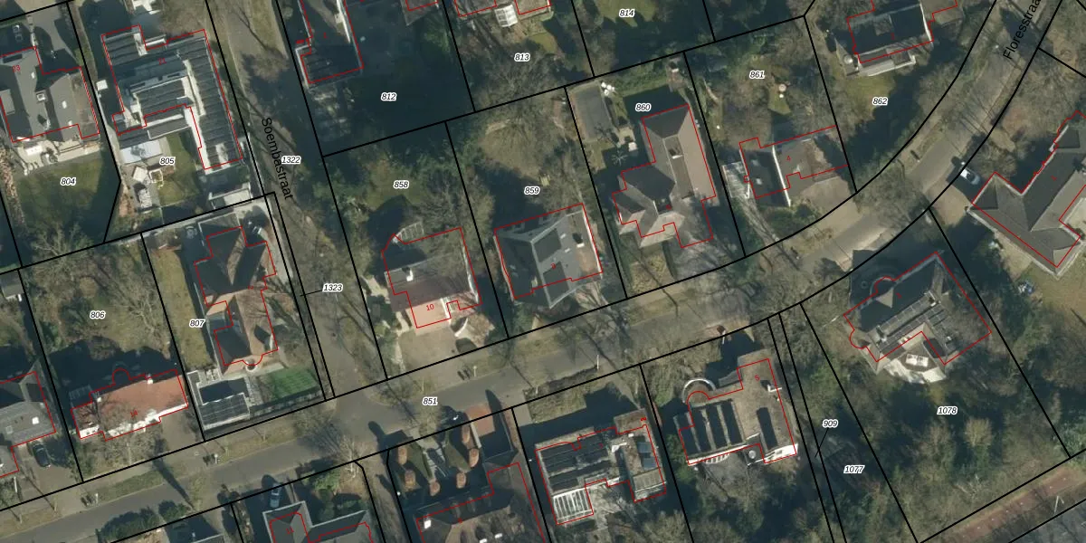 Het perceel waarop Floresstraat 8 staat heeft een oppervlakte van 950 m². Dit is een groot perceel. De perceeloppervlakte wordt geregistreerd door het Kadaster. Gedetailleerde informatie over de maten van dit perceel kunt u vinden in het rapport Kadastrale kaart met maatvoering van Floresstraat 8.