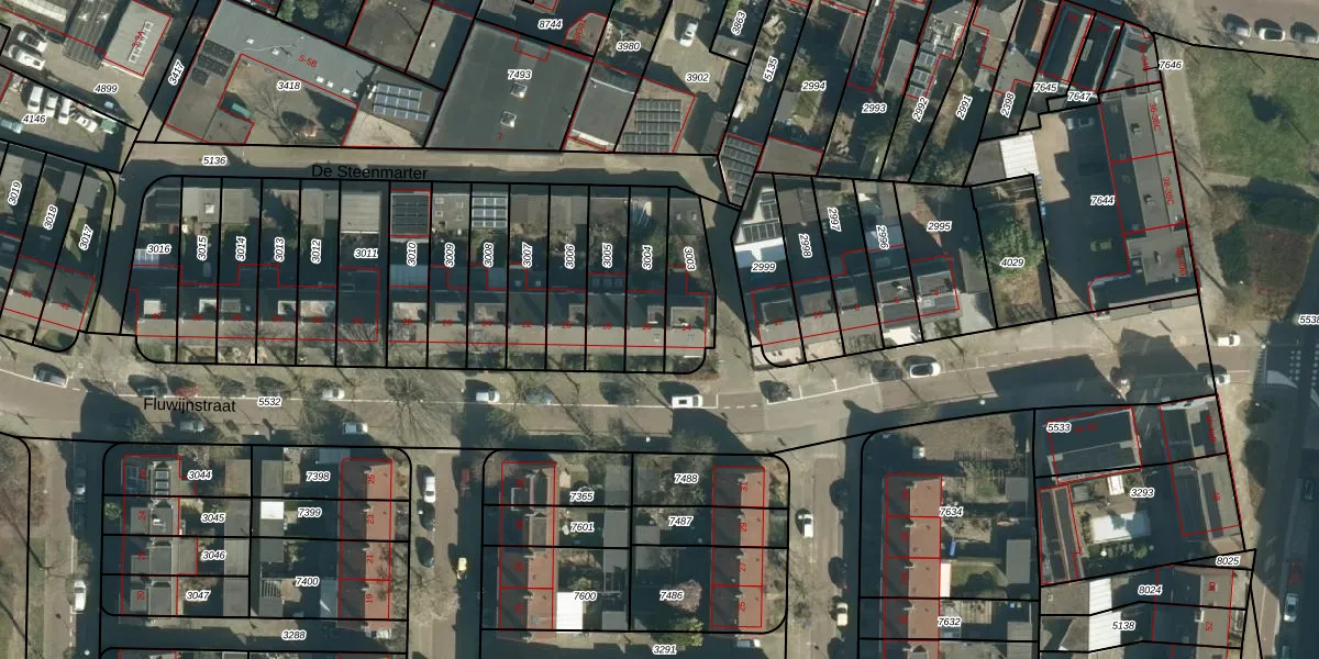 Fluwijnstraat 16 is gelegen op kadastraal perceel WSL01G3004. Deze kadastrale aanduiding is uniek en wordt gebruikt door het Kadaster om eigendomsrechten en andere zakelijke rechten vast te leggen. Het perceel maakt onderdeel uit van de kadastrale gemeente Woensel.