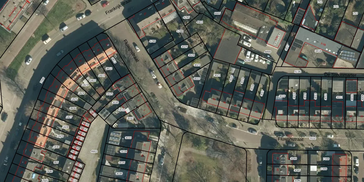 Fluwijnstraat 52 is gelegen op kadastraal perceel WSL01G3022. Deze kadastrale aanduiding is uniek en wordt gebruikt door het Kadaster om eigendomsrechten en andere zakelijke rechten vast te leggen. Het perceel maakt onderdeel uit van de kadastrale gemeente Woensel.