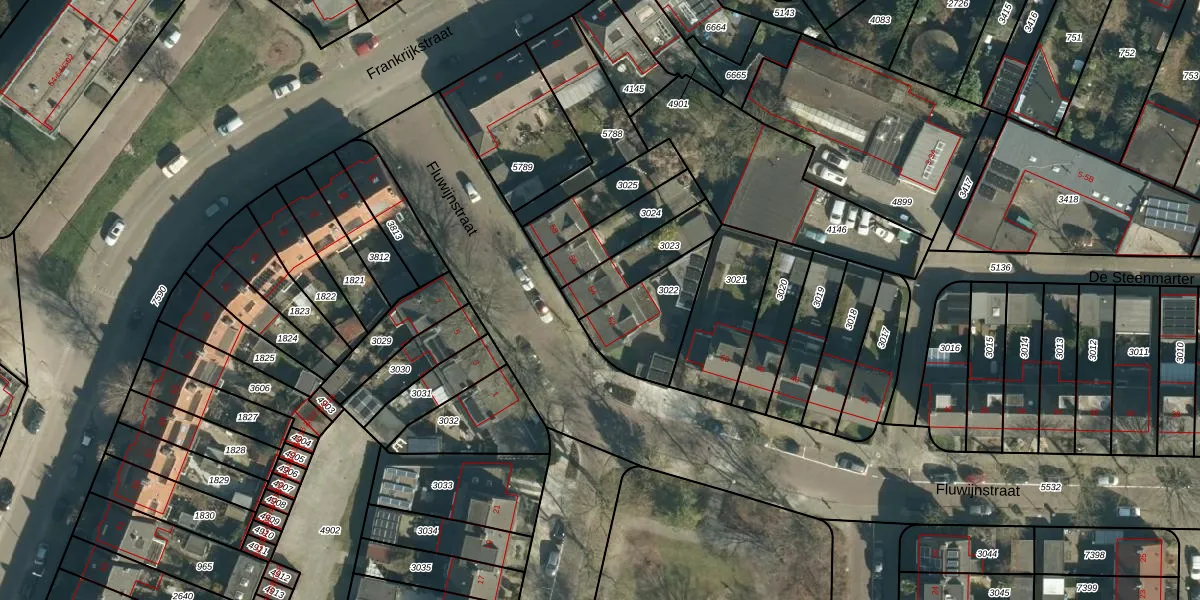 Fluwijnstraat 54 is gelegen op kadastraal perceel WSL01G3023. Deze kadastrale aanduiding is uniek en wordt gebruikt door het Kadaster om eigendomsrechten en andere zakelijke rechten vast te leggen. Het perceel maakt onderdeel uit van de kadastrale gemeente Woensel.