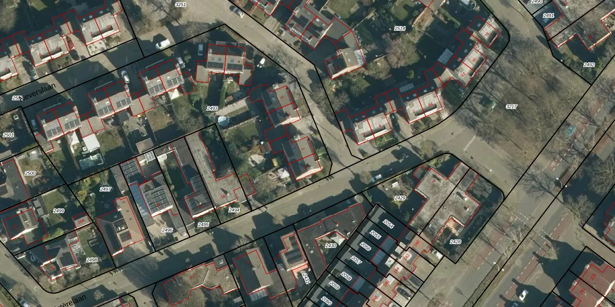 Het adres is gelegen op perceel 2493 in de sectie S en de kadastrale gemeente Woensel. De kadastrale aanduiding is aldus WSL01-S-2493. De gemiddelde perceeloppervlakte in de kadastrale gemeente Woensel is 1038,24 m². Dit perceel is met zijn 3155 m² dus groter dan gemiddeld. Het grootste perceel in de kadastrale gemeente is 74,9 ha. Het kleinste perceel heeft een oppervlakte van 0 m². Op het perceel liggen in totaal 12 adressen. De laatste wijziging in het de Basisregistratie Kadaster (BRK) was op 04-03-2009.