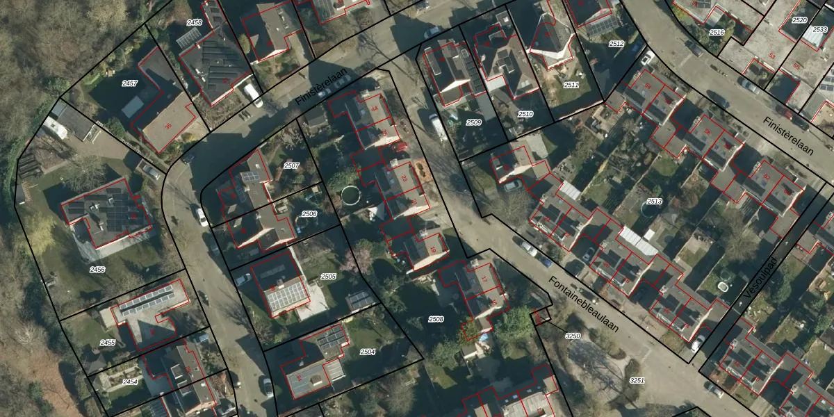 Het perceel waarop Fontainebleaulaan 21 staat heeft een oppervlakte van 3393 m². Dit is een zeer groot perceel. De perceeloppervlakte wordt geregistreerd door het Kadaster. Gedetailleerde informatie over de maten van dit perceel kunt u vinden in het rapport Kadastrale kaart met maatvoering van Fontainebleaulaan 21.