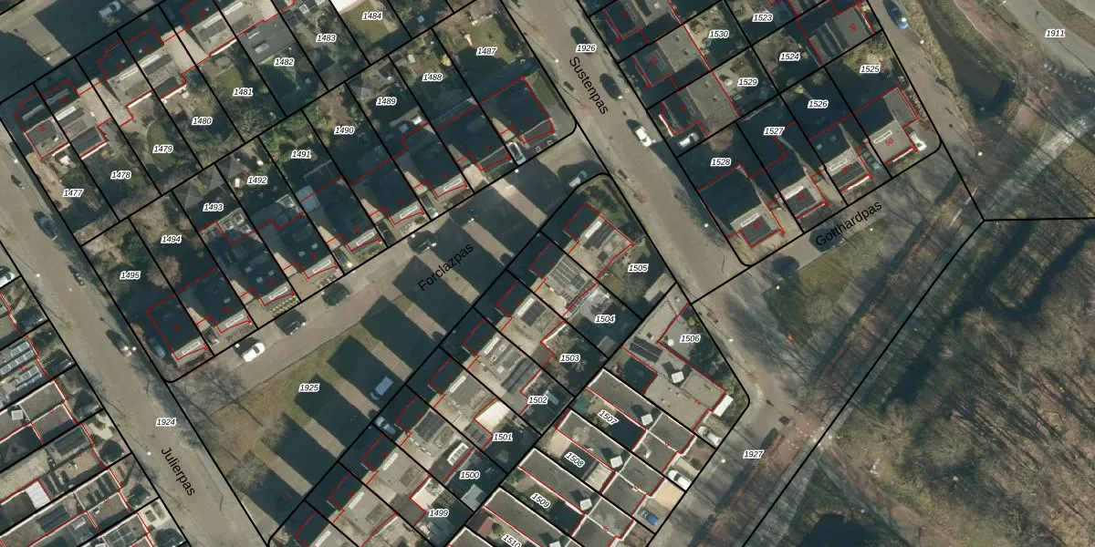 Gebruik de zoekbalk of klik op een perceel voor informatie over de adressen binnen dit perceel.