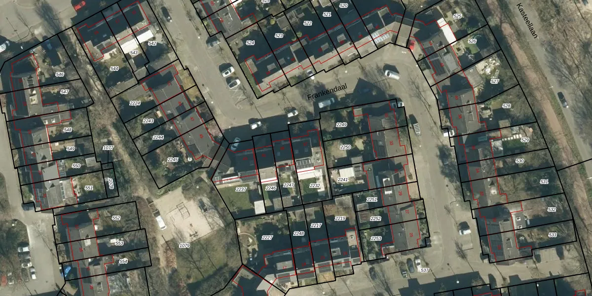 Het perceel waarop Frankendaal 37 staat heeft een oppervlakte van 289 m². Dit is een middelgroot perceel. De perceeloppervlakte wordt geregistreerd door het Kadaster. Gedetailleerde informatie over de maten van dit perceel kunt u vinden in het rapport Kadastrale kaart met maatvoering van Frankendaal 37.