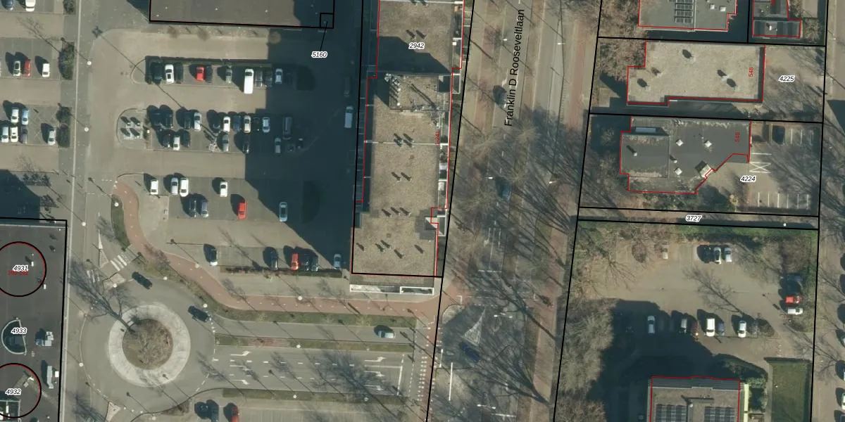 Het perceel waarop Franklin D Rooseveltlaan 215 staat heeft een oppervlakte van 2544 m². Dit is een zeer groot perceel. De perceeloppervlakte wordt geregistreerd door het Kadaster. Gedetailleerde informatie over de maten van dit perceel kunt u vinden in het rapport Kadastrale kaart met maatvoering van Franklin D Rooseveltlaan 215.