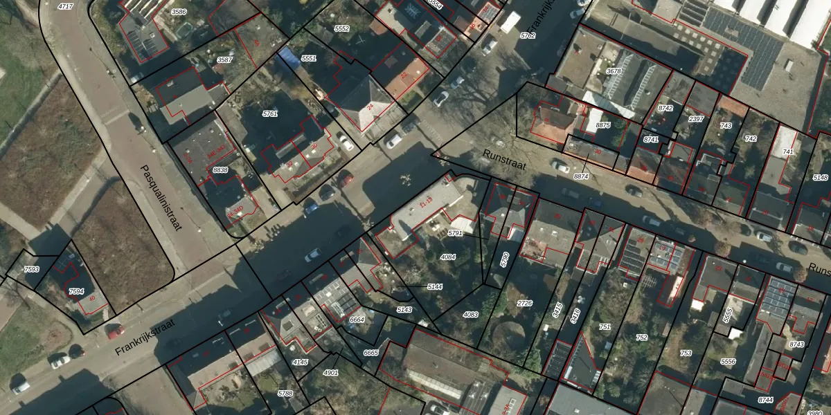 Frankrijkstraat 11 is gelegen op kadastraal perceel WSL01G4084. Deze kadastrale aanduiding is uniek en wordt gebruikt door het Kadaster om eigendomsrechten en andere zakelijke rechten vast te leggen. Het perceel maakt onderdeel uit van de kadastrale gemeente Woensel.
