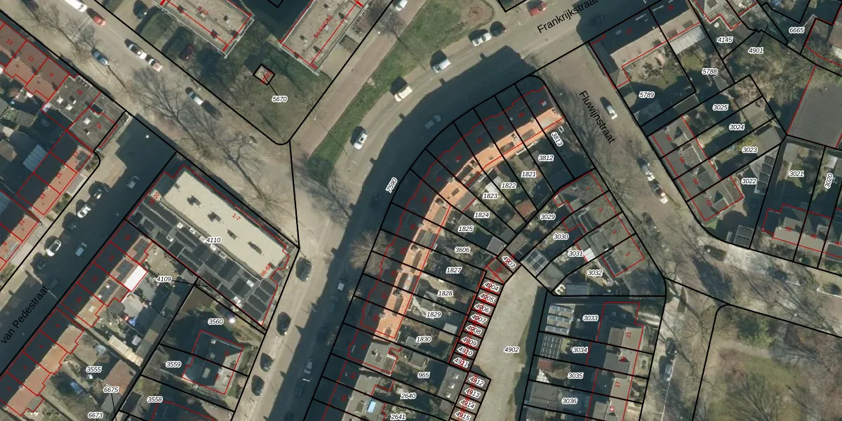 Het perceel waarop Frankrijkstraat 49 staat heeft een oppervlakte van 174 m². Dit is een middelgroot perceel. De perceeloppervlakte wordt geregistreerd door het Kadaster. Gedetailleerde informatie over de maten van dit perceel kunt u vinden in het rapport Kadastrale kaart met maatvoering van Frankrijkstraat 49.