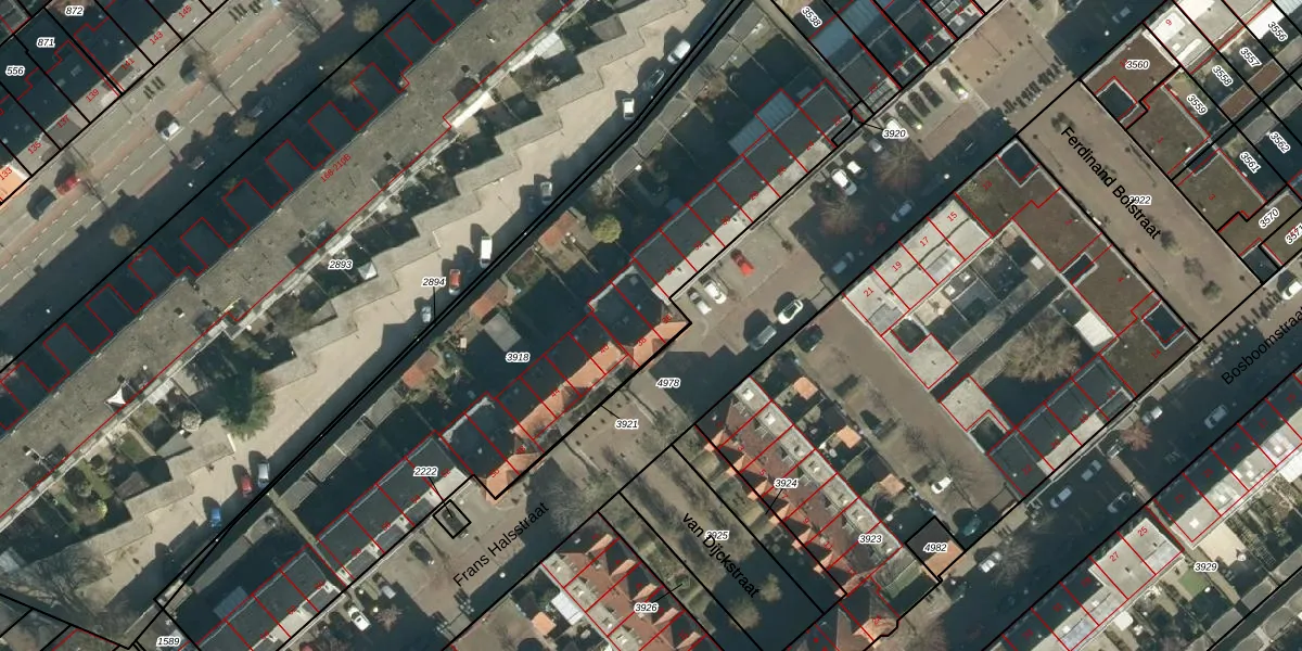 Het perceel waarop Frans Halsstraat 36 staat heeft een oppervlakte van 3006 m². Dit is een zeer groot perceel. De perceeloppervlakte wordt geregistreerd door het Kadaster. Gedetailleerde informatie over de maten van dit perceel kunt u vinden in het rapport Kadastrale kaart met maatvoering van Frans Halsstraat 36.