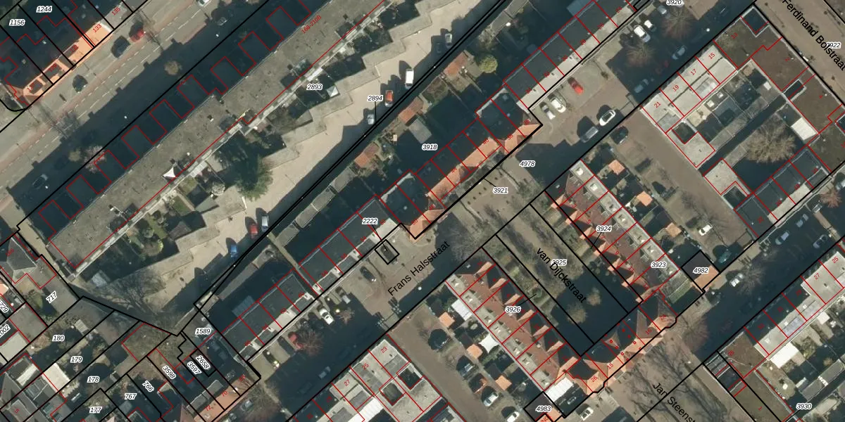 Het perceel waarop Frans Halsstraat 48 staat heeft een oppervlakte van 3006 m². Dit is een zeer groot perceel. De perceeloppervlakte wordt geregistreerd door het Kadaster. Gedetailleerde informatie over de maten van dit perceel kunt u vinden in het rapport Kadastrale kaart met maatvoering van Frans Halsstraat 48.