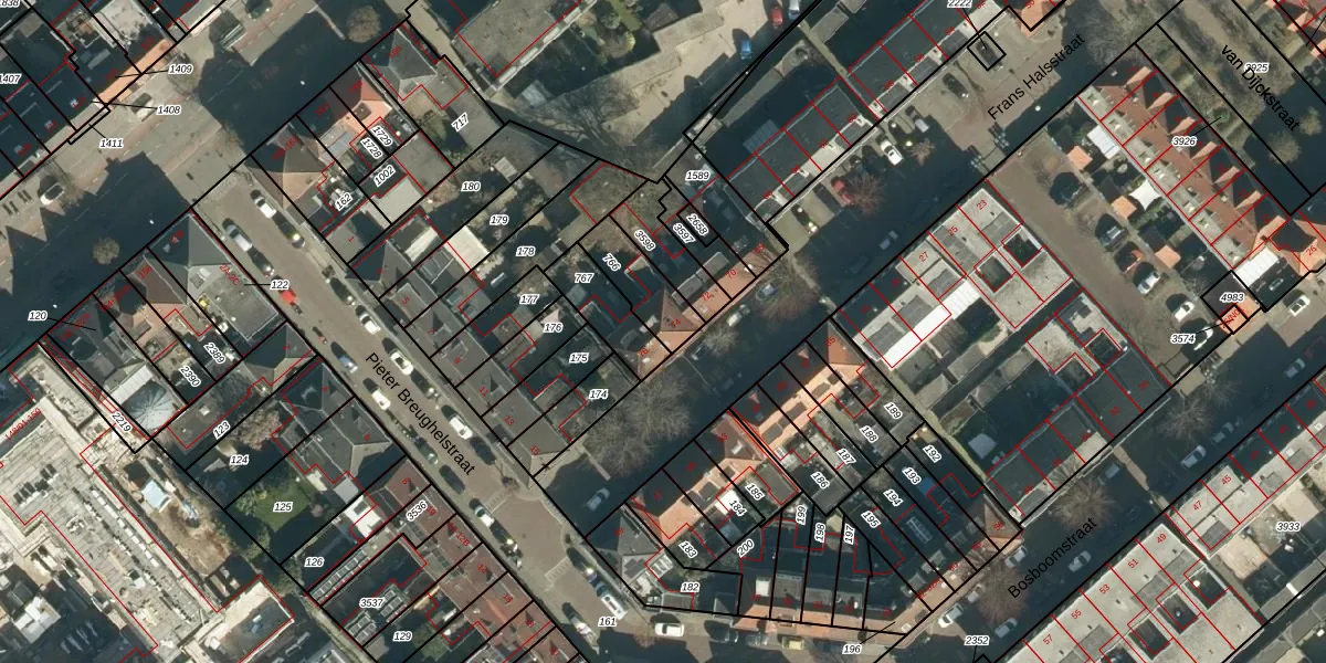 Gebruik de zoekbalk of klik op een perceel voor informatie over de adressen binnen dit perceel.