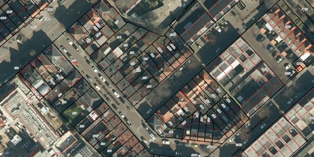Gebruik de zoekbalk of klik op een perceel voor informatie over de adressen binnen dit perceel.