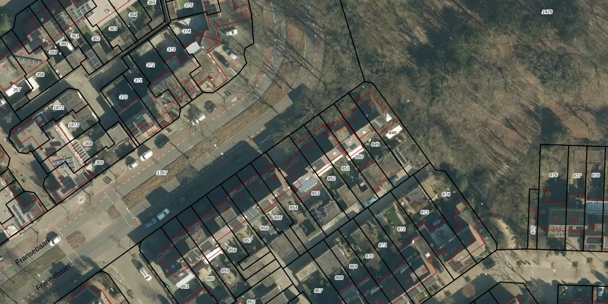 Fransebaan 20 is gelegen op kadastraal perceel WSL01R852. Deze kadastrale aanduiding is uniek en wordt gebruikt door het Kadaster om eigendomsrechten en andere zakelijke rechten vast te leggen. Het perceel maakt onderdeel uit van de kadastrale gemeente Woensel.