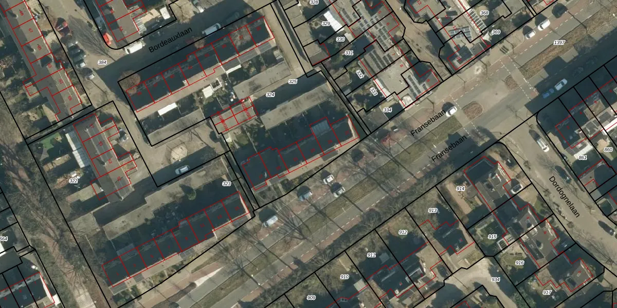 Fransebaan 23 is gelegen op kadastraal perceel WSL01S324. Deze kadastrale aanduiding is uniek en wordt gebruikt door het Kadaster om eigendomsrechten en andere zakelijke rechten vast te leggen. Het perceel maakt onderdeel uit van de kadastrale gemeente Woensel.