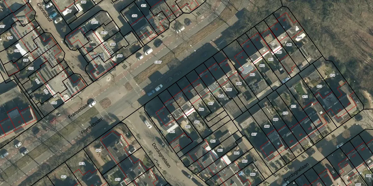 Fransebaan 8 is gelegen op kadastraal perceel WSL01R858. Deze kadastrale aanduiding is uniek en wordt gebruikt door het Kadaster om eigendomsrechten en andere zakelijke rechten vast te leggen. Het perceel maakt onderdeel uit van de kadastrale gemeente Woensel.