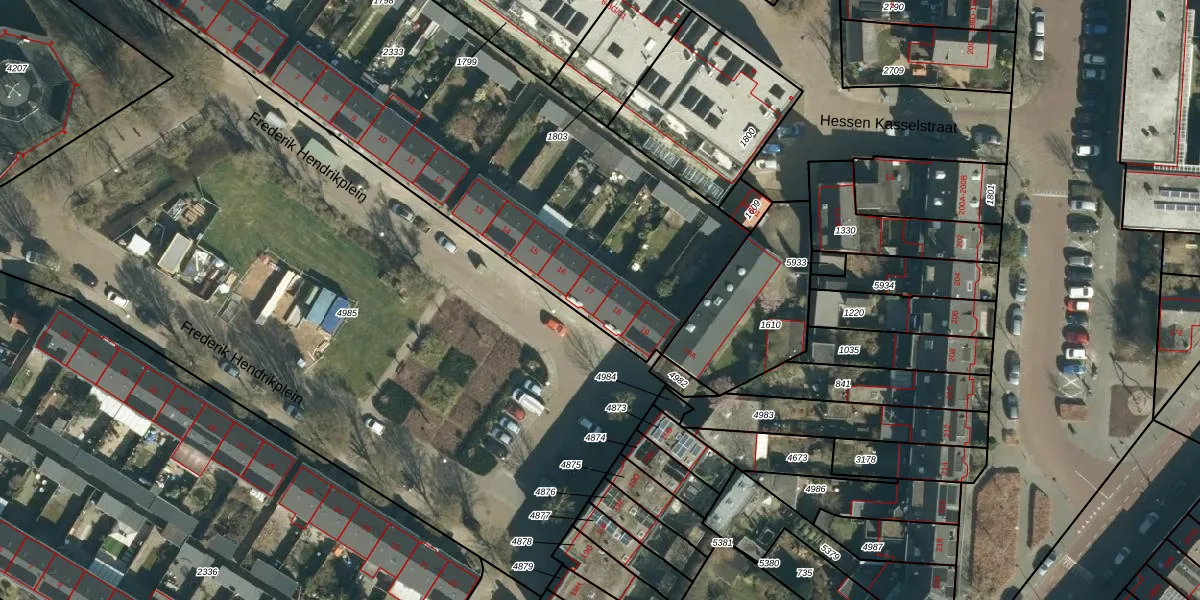 Het perceel waarop Frederik Hendrikplein 17 staat heeft een oppervlakte van 4046 m². Dit is een zeer groot perceel. De perceeloppervlakte wordt geregistreerd door het Kadaster. Gedetailleerde informatie over de maten van dit perceel kunt u vinden in het rapport Kadastrale kaart met maatvoering van Frederik Hendrikplein 17.
