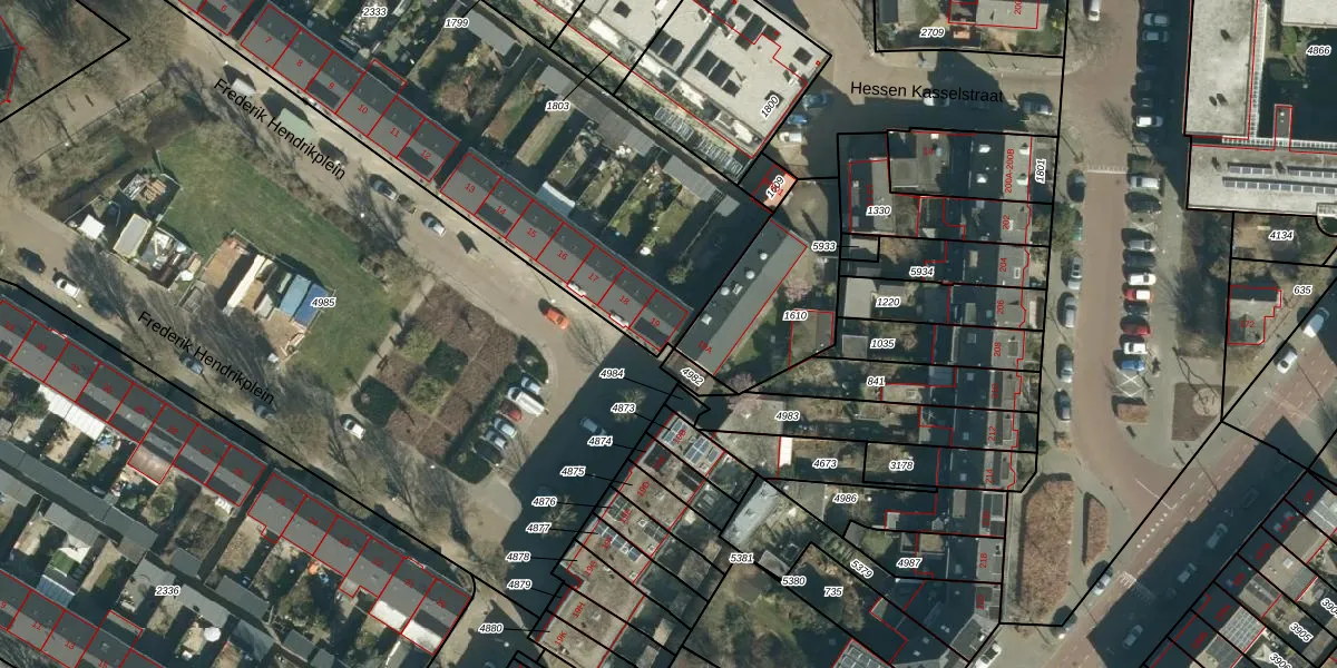 Het perceel waarop Frederik Hendrikplein 19 staat heeft een oppervlakte van 4046 m². Dit is een zeer groot perceel. De perceeloppervlakte wordt geregistreerd door het Kadaster. Gedetailleerde informatie over de maten van dit perceel kunt u vinden in het rapport Kadastrale kaart met maatvoering van Frederik Hendrikplein 19.