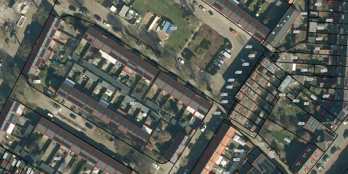 Het perceel waarop Frederik Hendrikplein 24 staat heeft een oppervlakte van 4960 m². Dit is een zeer groot perceel. De perceeloppervlakte wordt geregistreerd door het Kadaster. Gedetailleerde informatie over de maten van dit perceel kunt u vinden in het rapport Kadastrale kaart met maatvoering van Frederik Hendrikplein 24.