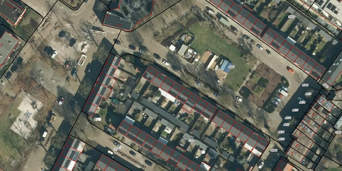 Het perceel waarop Frederik Hendrikplein 31 staat heeft een oppervlakte van 4960 m². Dit is een zeer groot perceel. De perceeloppervlakte wordt geregistreerd door het Kadaster. Gedetailleerde informatie over de maten van dit perceel kunt u vinden in het rapport Kadastrale kaart met maatvoering van Frederik Hendrikplein 31.