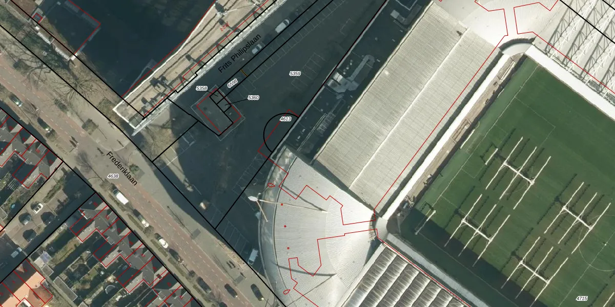 Frederiklaan 10 is gelegen op kadastraal perceel STR03C4715. Deze kadastrale aanduiding is uniek en wordt gebruikt door het Kadaster om eigendomsrechten en andere zakelijke rechten vast te leggen. Het perceel maakt onderdeel uit van de kadastrale gemeente Strijp.