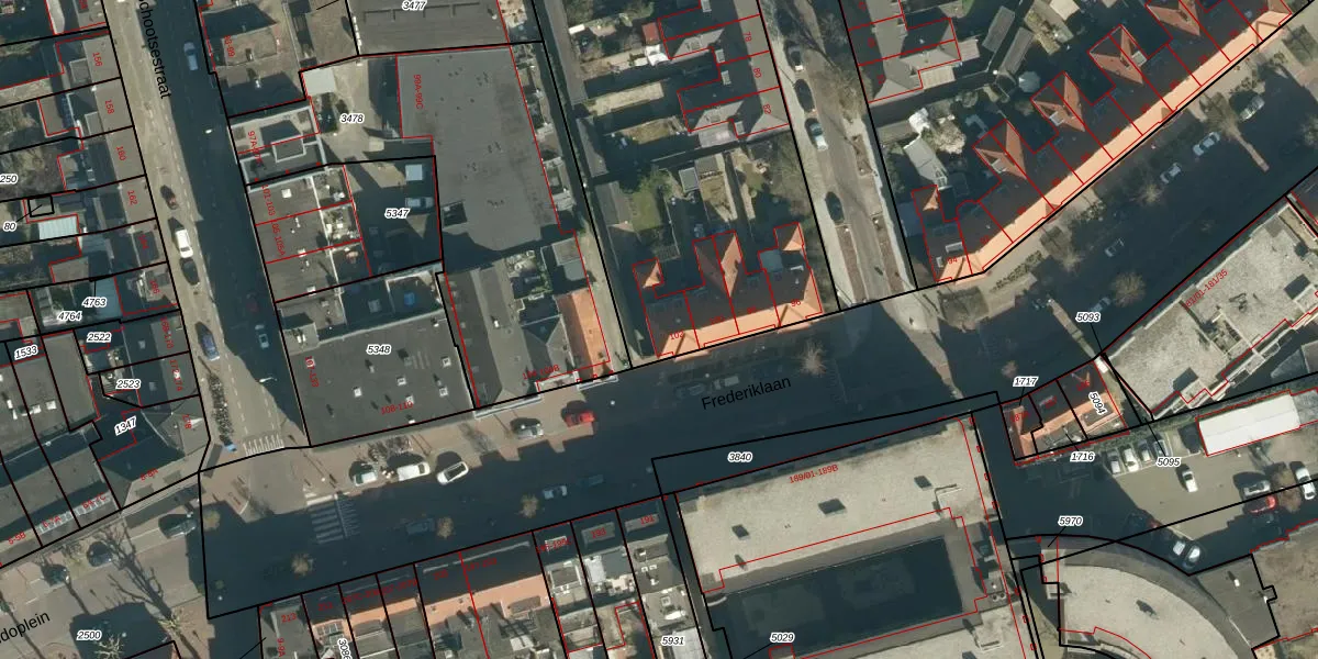 Het perceel waarop Frederiklaan 102 staat heeft een oppervlakte van 5529 m². Dit is een zeer groot perceel. De perceeloppervlakte wordt geregistreerd door het Kadaster. Gedetailleerde informatie over de maten van dit perceel kunt u vinden in het rapport Kadastrale kaart met maatvoering van Frederiklaan 102.