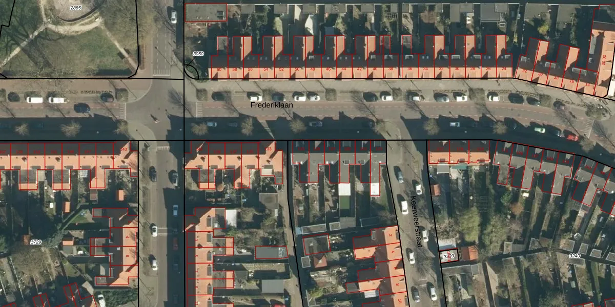 Het perceel waarop Frederiklaan 131 staat heeft een oppervlakte van 3455 m². Dit is een zeer groot perceel. De perceeloppervlakte wordt geregistreerd door het Kadaster. Gedetailleerde informatie over de maten van dit perceel kunt u vinden in het rapport Kadastrale kaart met maatvoering van Frederiklaan 131.