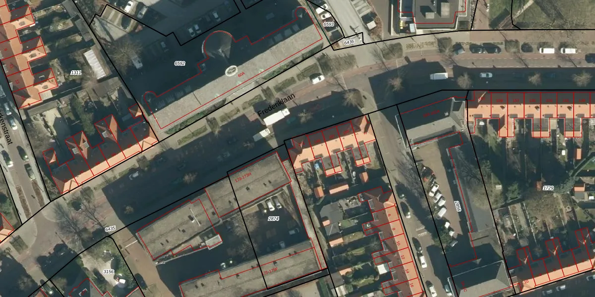 Het perceel waarop Frederiklaan 171 staat heeft een oppervlakte van 4840 m². Dit is een zeer groot perceel. De perceeloppervlakte wordt geregistreerd door het Kadaster. Gedetailleerde informatie over de maten van dit perceel kunt u vinden in het rapport Kadastrale kaart met maatvoering van Frederiklaan 171.