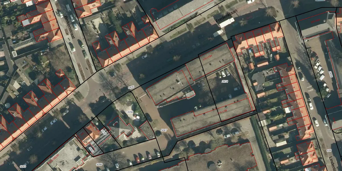 Frederiklaan 173 is gelegen op kadastraal perceel STR03C5047. Deze kadastrale aanduiding is uniek en wordt gebruikt door het Kadaster om eigendomsrechten en andere zakelijke rechten vast te leggen. Het perceel maakt onderdeel uit van de kadastrale gemeente Strijp.