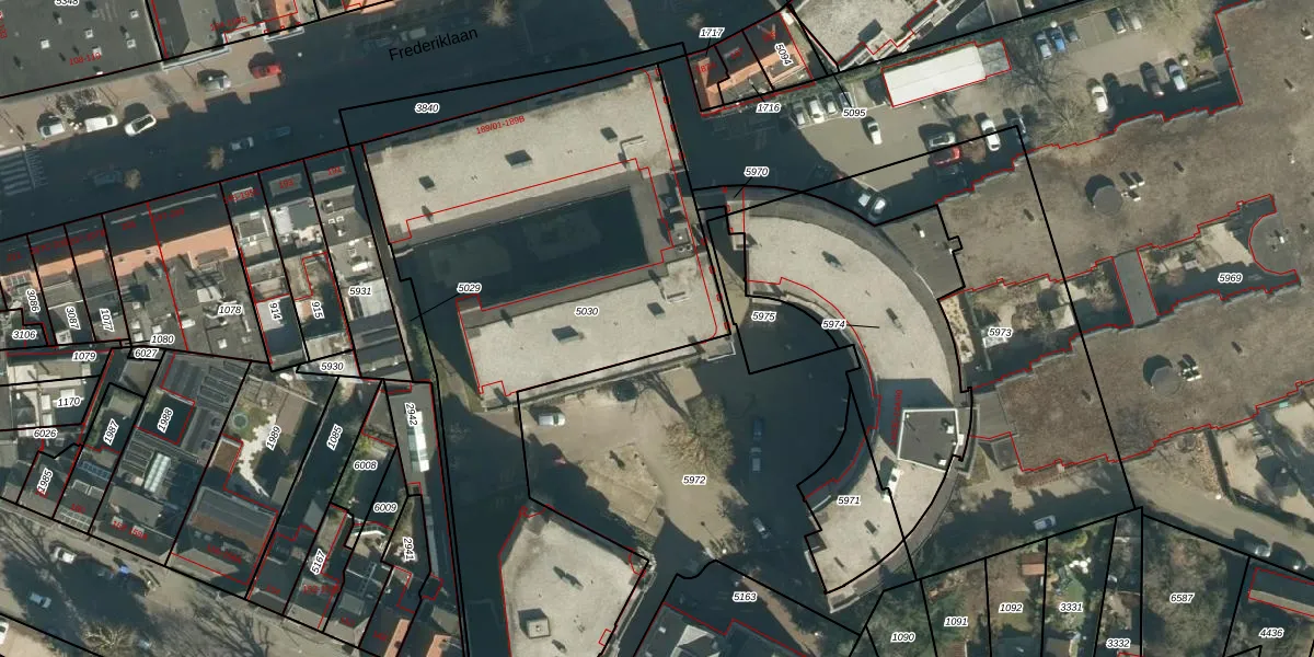 Het perceel waarop Frederiklaan 189-77 staat heeft een oppervlakte van 2830 m². Dit is een zeer groot perceel. De perceeloppervlakte wordt geregistreerd door het Kadaster. Gedetailleerde informatie over de maten van dit perceel kunt u vinden in het rapport Kadastrale kaart met maatvoering van Frederiklaan 189-77.