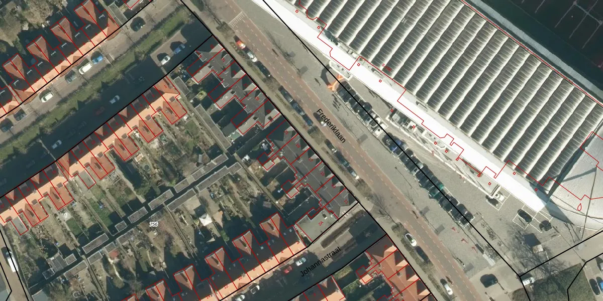 Frederiklaan 19 is gelegen op kadastraal perceel STR03C756. Deze kadastrale aanduiding is uniek en wordt gebruikt door het Kadaster om eigendomsrechten en andere zakelijke rechten vast te leggen. Het perceel maakt onderdeel uit van de kadastrale gemeente Strijp.