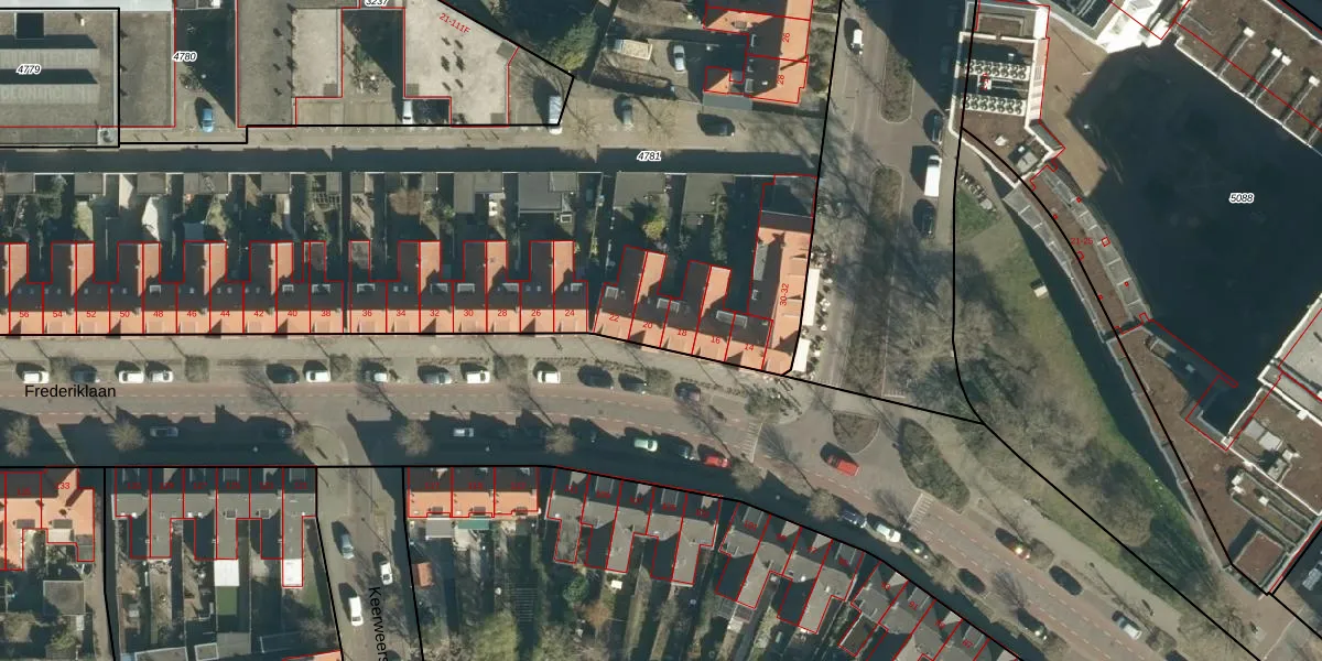 Frederiklaan 20 is gelegen op kadastraal perceel STR03C4781. Deze kadastrale aanduiding is uniek en wordt gebruikt door het Kadaster om eigendomsrechten en andere zakelijke rechten vast te leggen. Het perceel maakt onderdeel uit van de kadastrale gemeente Strijp.