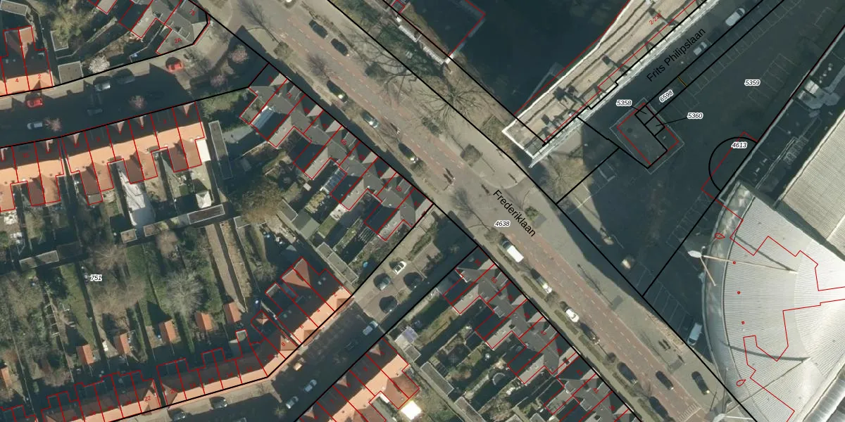 Frederiklaan 57 is gelegen op kadastraal perceel STR03C751. Deze kadastrale aanduiding is uniek en wordt gebruikt door het Kadaster om eigendomsrechten en andere zakelijke rechten vast te leggen. Het perceel maakt onderdeel uit van de kadastrale gemeente Strijp.