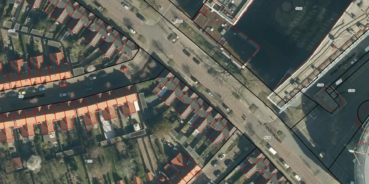 Frederiklaan 69 is gelegen op kadastraal perceel STR03C751. Deze kadastrale aanduiding is uniek en wordt gebruikt door het Kadaster om eigendomsrechten en andere zakelijke rechten vast te leggen. Het perceel maakt onderdeel uit van de kadastrale gemeente Strijp.