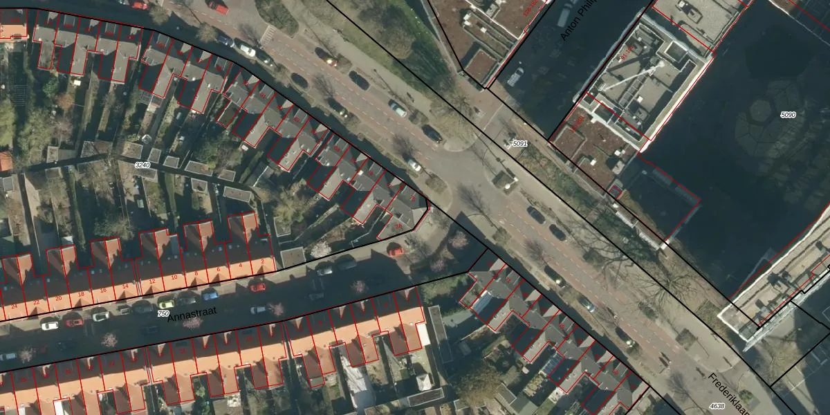 Frederiklaan 75 is gelegen op kadastraal perceel STR03C3240. Deze kadastrale aanduiding is uniek en wordt gebruikt door het Kadaster om eigendomsrechten en andere zakelijke rechten vast te leggen. Het perceel maakt onderdeel uit van de kadastrale gemeente Strijp.