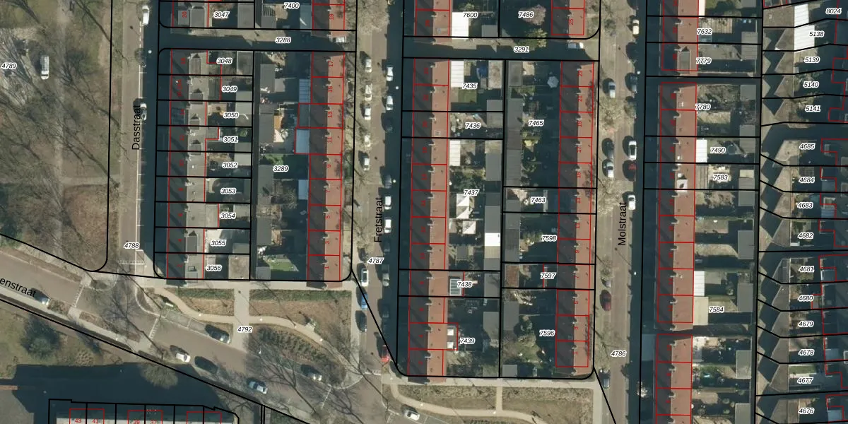 Het perceel waarop Fretstraat 14 staat heeft een oppervlakte van 760 m². Dit is een groot perceel. De perceeloppervlakte wordt geregistreerd door het Kadaster. Gedetailleerde informatie over de maten van dit perceel kunt u vinden in het rapport Kadastrale kaart met maatvoering van Fretstraat 14.