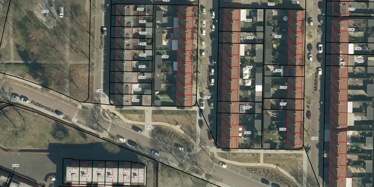 Fretstraat 3 is gelegen op kadastraal perceel WSL01G3289. Deze kadastrale aanduiding is uniek en wordt gebruikt door het Kadaster om eigendomsrechten en andere zakelijke rechten vast te leggen. Het perceel maakt onderdeel uit van de kadastrale gemeente Woensel.